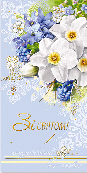 Опис Листівка подвійна Е євроформат з тисненням Е-4912 "Зі святом!"
