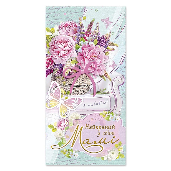 Опис Листівка подвійна з брокатом та тисненням з конвертом в упаковці 4459