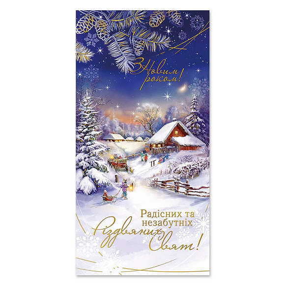 Опис Листівка подвійна з брокатом та тисненням з конвертом в упаковці 4623