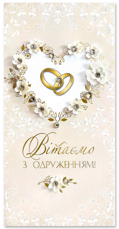 Опис Листівка ручної роботи Р з конвертом в упаковці Р-1258 "Вітаємо з одруженням!"