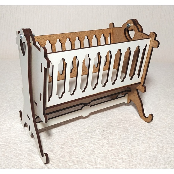 Ліжко-люлька 1 для малюка ляльок (Барбі, Братц, Монстр Хай), Матеріал: ДВП ламіноване і шліфоване. Розмір: 19 * 15,5 * 11 см. Вага 130г. Упаковка: пакет. Для дітей від 3-х років під наглядом дорослих (може містити дрібні предмети). Зберігати при t від 5 до 26 С, відн.вологість 50-80%. Тримати подалі від вогню, води і механічних пошкоджень. Термін придатності необмежений.