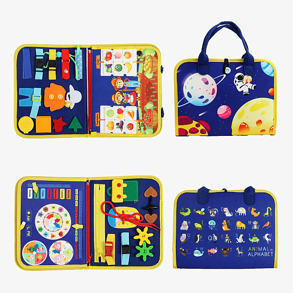 Ця яскрава логічна папка створена для цікавого та корисного розвитку дитини будь-де й у будь-який момент!Усередині малюк знайде безліч інтерактивних елементів: геометричні фігури, шнурівка, застібки, шестерінки. Зручний формат у вигляді сумочки дозволяє легко брати папку в дорогу, у садочок чи на прогулянку. Кожна сторінка спрямована на розвиток дрібної моторики, логіки, уяви та самостійності дитини. Така папка стане чудовим подарунком, що заохотить малюка до пізнавальної гри.