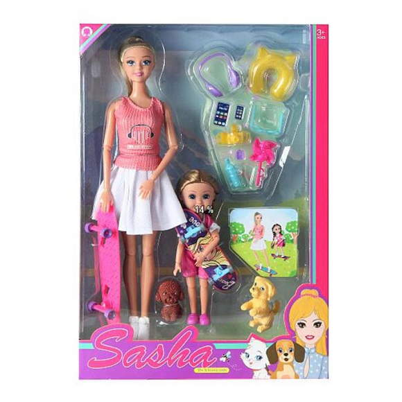 Опис Лялька 51853 2 шт., шарнірні, скейт 2 шт., собачка, аксесуари, кор., 23-33-7 см.