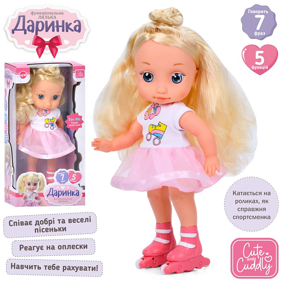 Опис Лялька m 5957 i ua Даринка, говорить, співає, читає вірші, бат., кор., 21-40,5-14 см.