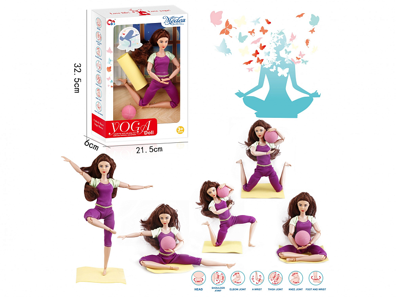 Лялька йогиня з килимком і м'ячем, розмір 29 см
