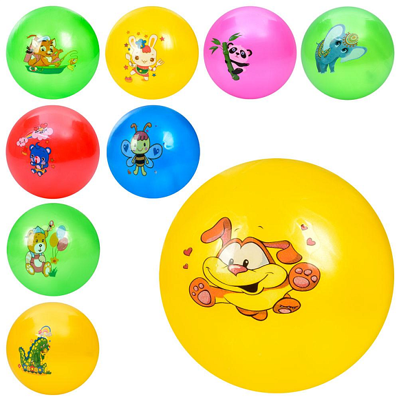 Опис М'яч дитячий ms 3614 9 дюймів, малюнок (тварини) 5 кольорів, (мікс видів) 47-52г., 10шт. кул.