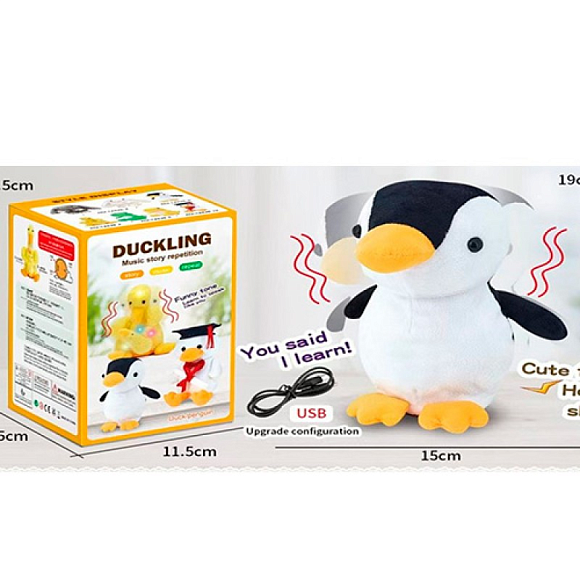Опис М'яка іграшка mp 2309 пінгвін, повторюшка,рух.головою,акум.,usb,2 кольори,світло,кор.,18-11,5-11,5см