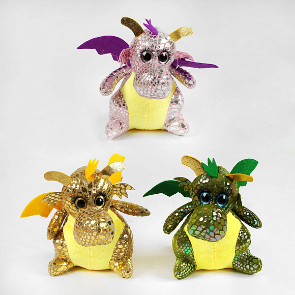 Опис М`яка іграшка С 61279 (240) 3 кольори, “Дракончик”, розмір 17х21 см, ВИДАЄТЬСЯ МІКС