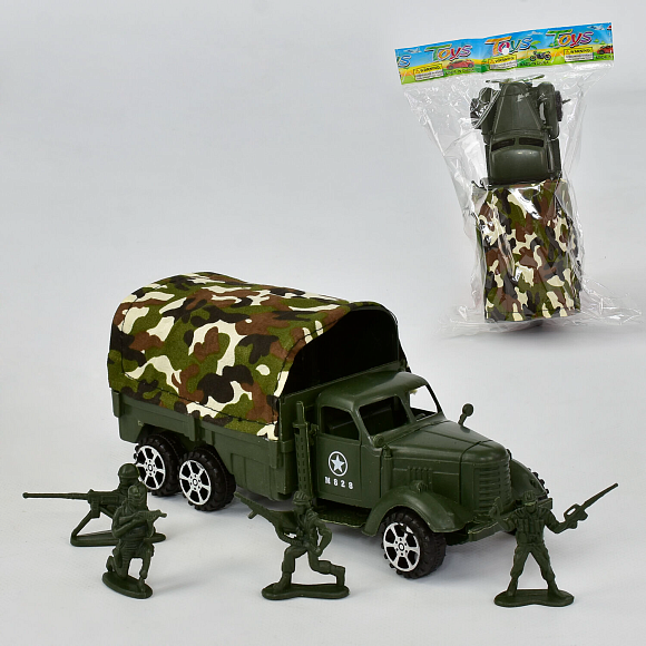 Машина військова 828 В – чудовий подарунок для тих, хто цікавиться військовою технікою та армійською тематикою.У комплекті: армійська вантажівка та 4 фігурки солдатів.
