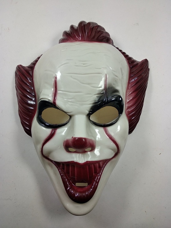 З популярного фільму Воно! Супер реалістична маска найвідомішого злого клоуна сучасності - Пеннивайз! Маска з латексу з волоссям. Один розмір стандарт.