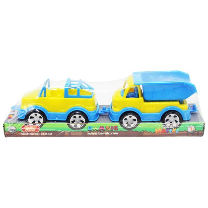 Ігровий набір із двох яскравих машинок, які легко з'єднуються між собою за допомогою кріплень і можуть їздити "паровозиком". Виконані із міцного ударостійкого пластику, чудово підійдуть для гри як удома, так і на вулиці.