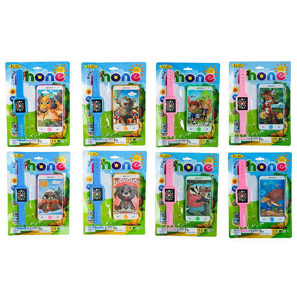 Мобільний телефон арт. 692-A5 (528шт/2) + часи, 8 видів мікс, планшет 23*17*1 см