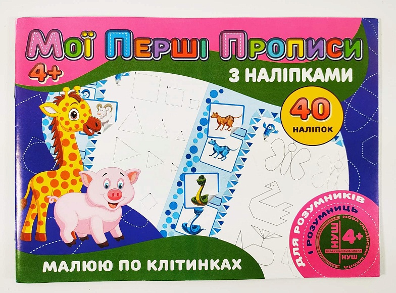 Опис Мої перші прописи з наліпками 40 наліпок: Малюю по клітинкам (у)