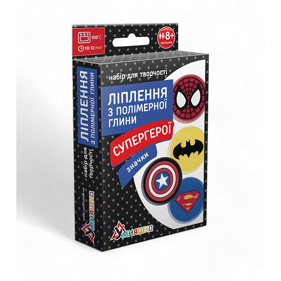 Опис Набір д/творчості "Ліплення з полімерної глини "Значки Супергерої"