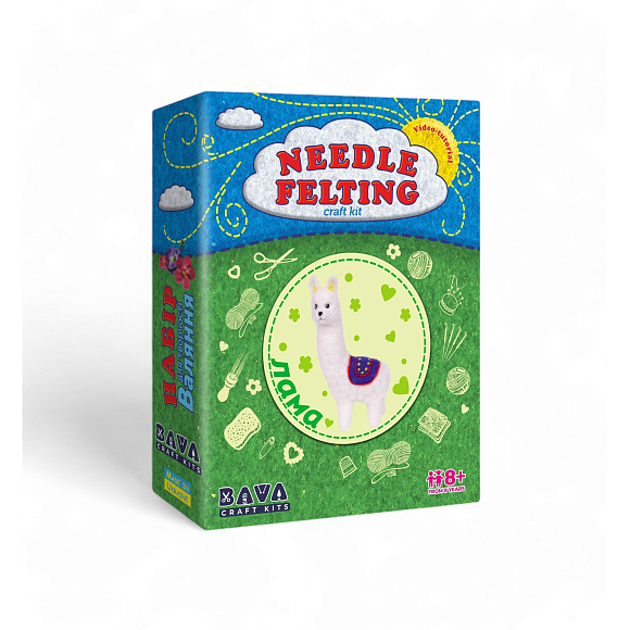 Розмір коробки ДхШхВ см -17,2 * 5 * 22,3. Розмір готового виробу ДхШхВ см - близько 17* 8,5.У наборі: натуральна шерсть д / валяння, голка д / валяння, мочалка, всі необхідні аксесуари. Є відео майстер-клас. Для дітей від 8 років.