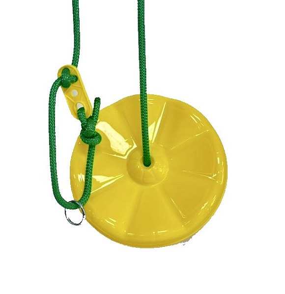 Сидіння: Діаметр 280 мм .Гойдалка стійка до атмосферних впливів та УФ-променів. Простота в установці. Яскраві кольори для дитячого майданчика! Канат плетений, поліпропіленовий, диаметр 12 мм. – Довжина мотузки регулюється 115-200см.- Металеві деталі виготовлені з оцинкованої сталі, стійкої до корозії!