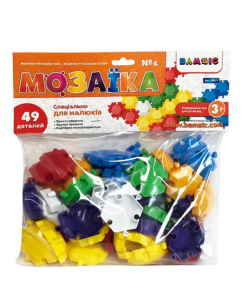 Опис Набір дитячий «Мозаїка різнокольорова №1» арт. 069/1 (49 деталей) діам мозаїкi 50 мм Бамсик