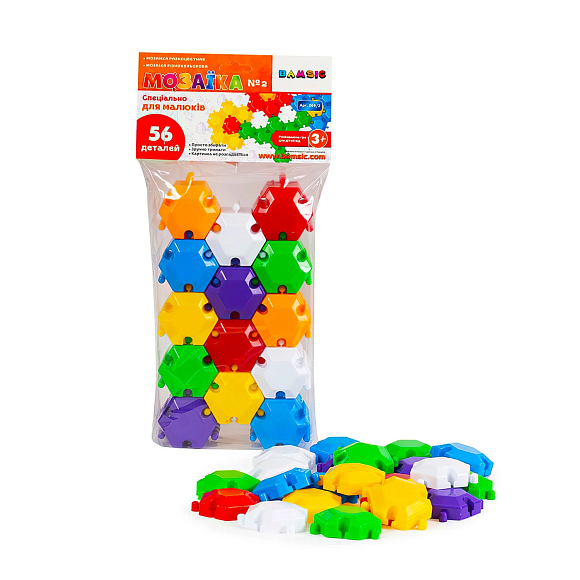 Різнобарвна мозаїка №2 складається з 56 штук мозаїки. Розмір 1 мозаїки 5*5 см. Розмір набору 38*15*6 см. Вага 275 г.