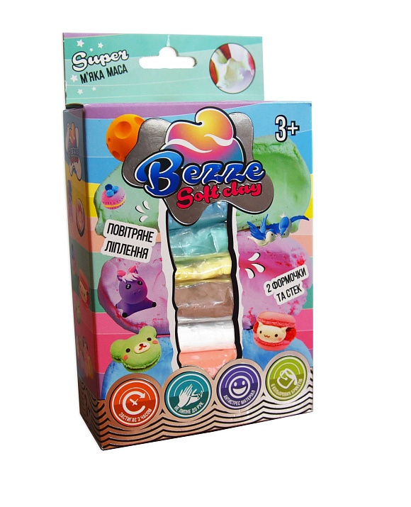 М'яка маса Bezze допомагає вивчити дітям кольору і форми, а також розвинути творчі навички та фантазію. Пластична і еластична маса допоможе створити різні десерти, використовуючи прикраси і формочки з набору. Маса не забруднює ручки, приємна на дотик і нетоксична.