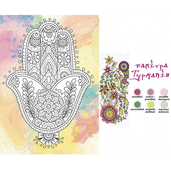 Опис Набір для розпису на полотні. Дзен малювання. Долонь долі (палітра турмалін) 18*25