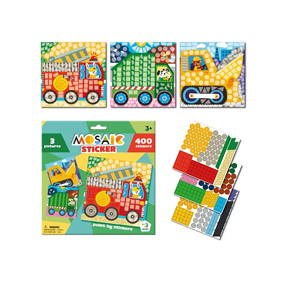 Набір для творчості Мозаїка зі стікерами "Транспорт" 300899 (48) "Dodo", 3 картинки-основи, 400 наліпок