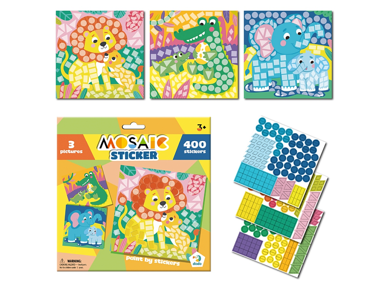 Набір для творчості Мозаїка зі стікерами "Зоопарк" 300896 (48) "Dodo", 3 картинки-основи, 400 наліпок