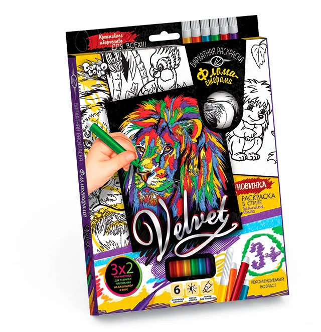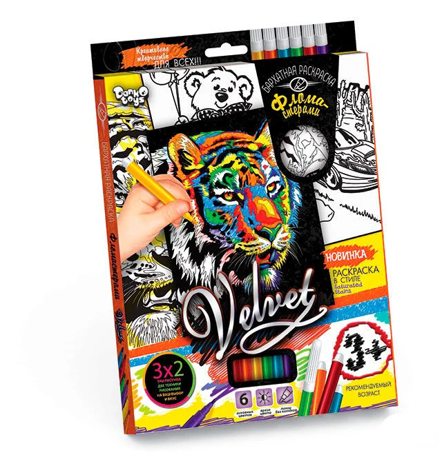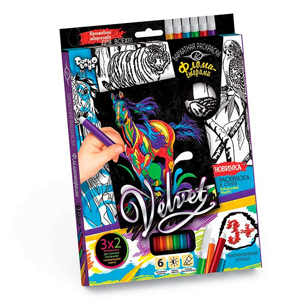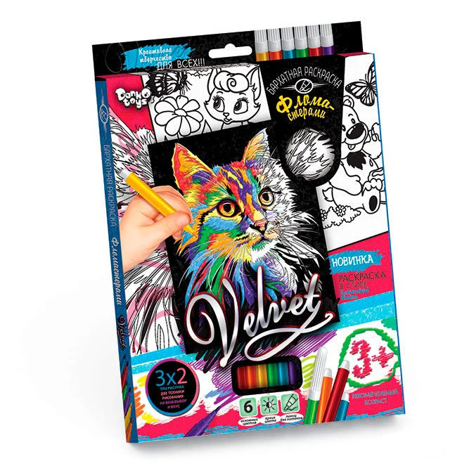 Опис Набір для творчості "Оксамитова розмальовка фломастерами VELVET" VLV-01-01,02,03 ... 10 (20) 8 видів "Danko Toys"