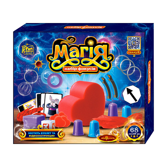 Опис Набір фокусів "Магія" 13772 (18) "4fun game club", qr-код з відео майстер-класом, у коробці