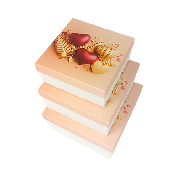 Набір коробок 3 штуки, 19 х 19 х 9/17 х 17 х 8/15 х 15 х 6см "Серця"