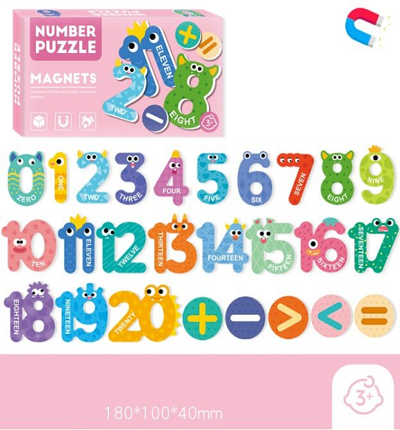Магнітна гра "Цифри" — ідеальний помічник для першого знайомства з числами та простими діями. Веселі мордочки на кожній цифрі роблять навчання ще цікавішим, а яскраві кольори приваблюють увагу малюків. До кожного числа додано підпис англійською мовою — це чудова нагода вивчити не лише рахунок, а й базову лексику. Магніти можна прикріплювати до дошки, холодильника чи будь-якої іншої магнітної поверхні.Особливості:
