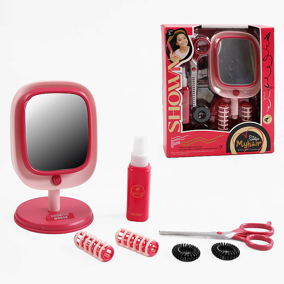 Набір перукаря 2805-1 (72/2) дзеркало, підсвітка, бігуді, ножиці, гребінець, резинки, спрей, в коробці