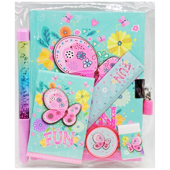 Набір подарунковий з блокнотом на замочку, міні-блокнотом, ручкою, гумкою, лінійкою Метелик забава
