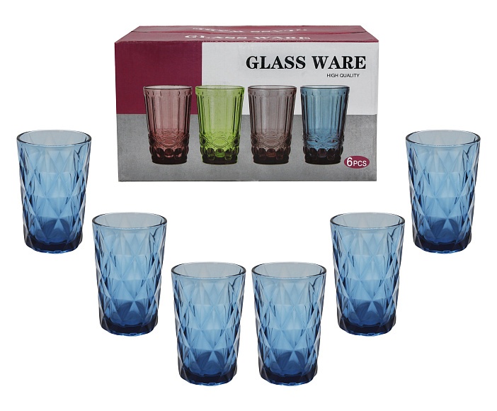 Опис Набір склянку. скляний №dkb-2 в уп.6шт cініє (13*8*6.5)cm ЦІНА ЗА 6 СТАКАНІВ
