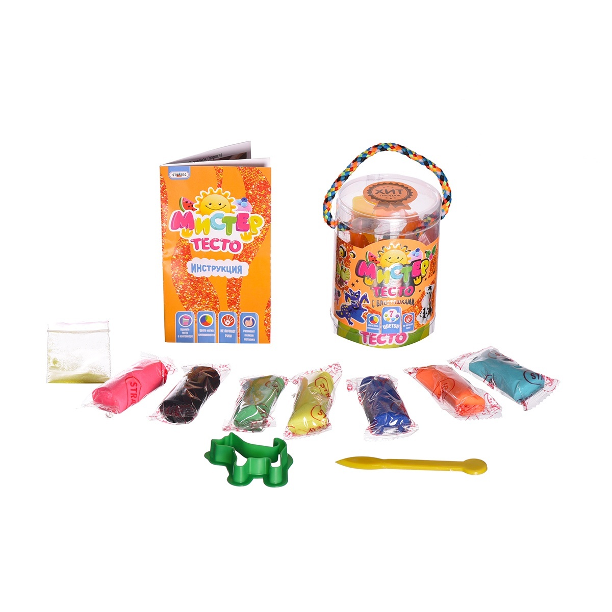 «Містер тісто» (Strateg 71106) - дивно яскравий і барвистий набір для ліплення, який, безсумнівно, припаде до смаку дитині і надовго захопить його в світ творчості. Комплектація даного набору дозволяє малюкам не обмежувати свої фантазію і створювати найцікавіші і дивовижні фігурки. Сім найяскравіших кольорів, які представлені в комплекті, без проблем можна з'єднувати між собою. Така особливість тесту дає можливість маленькому творцеві створювати свої скульптурки, додаючи в них деталі іншого кольору, що напевно зробить їх ще більш насиченими і реалістичними.Дивовижні властивості такої маси порадують і малюка, і батьків. Яскраві фарби і приємний фруктовий запах моментально привертають увагу дитини. Комплект доповнений формочкой, петелькой з замочком, очками, які знадобляться для створення фігур тварин, спеціальним стеком для ліплення. Дитина отримає задоволення не тільки від результату своєї праці, а й від процесу творення.