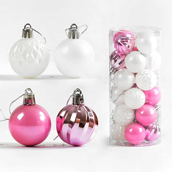 Опис Новорічні прикраси D 35027 (108) 24 шт, кулька, D = 4 см, у слюді