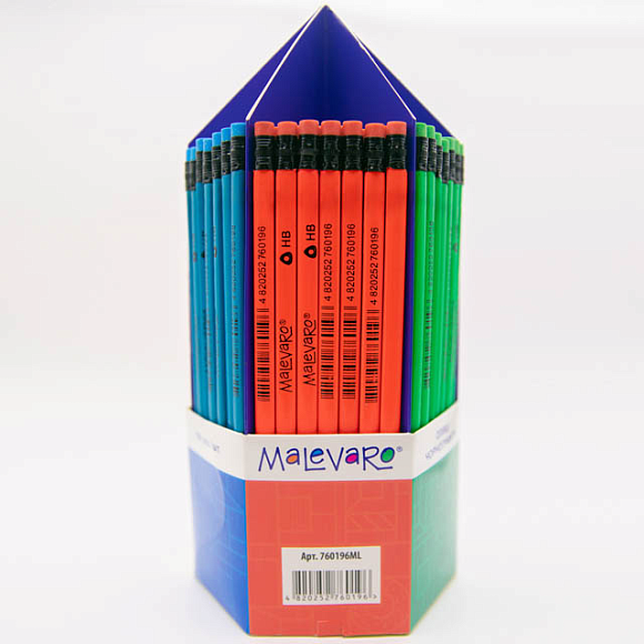 Опис Олівці чорнографітні NEON трикутні HB 168шт, туба-олівець, MALEVARO