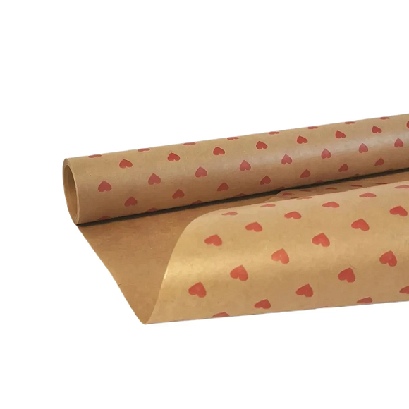 Папір подарунковий крафт "Серця маленькі" червоні 70 см х 10 м