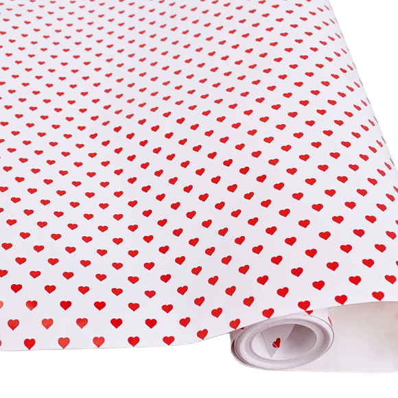 Опис Папір подарунковий "Серця" червоні на білому 70 см х 10 м