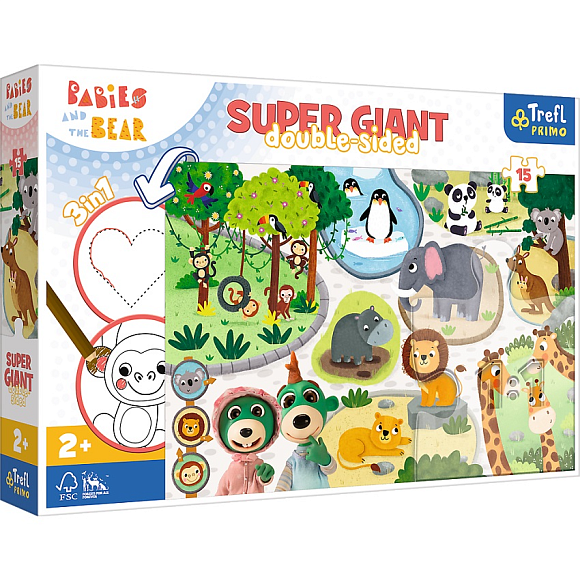 Опис Пазли + розмальовка - (15 елм.SUPER GIANT) - "Дітки в зоопарку" /Trefl
