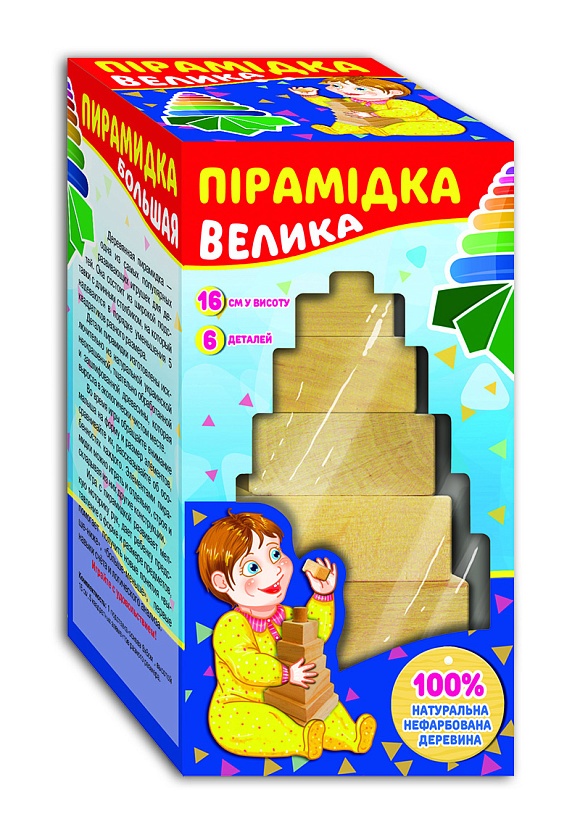 Дерев'яна пірамідка - справжня знахідка для розвитку дитини! Проста і ефективна, цікава і яскрава конструкція - ідеальний варіант для стимуляції зорового і тактильного сприйняття, розвитку дрібної моторики рук і координації рухів, логічного мислення.