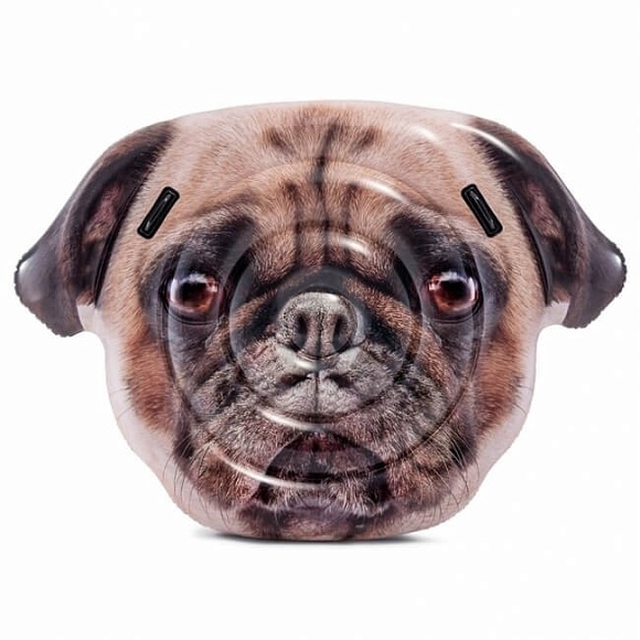 Оригінальний надувний пліт 58785 у вигляді собачкиГламурненький дизайн плотика у вигляді зображення собаки породи Мопс сподобається не тільки любителям домашніх тварин.