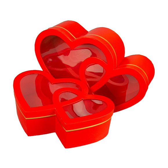 Подарункова коробка W3158 серце, червоне, 22.8x19.2x11cm/19.8x16.8x9.5cm/16.8x14.3x8cm 3шт. в наборі
