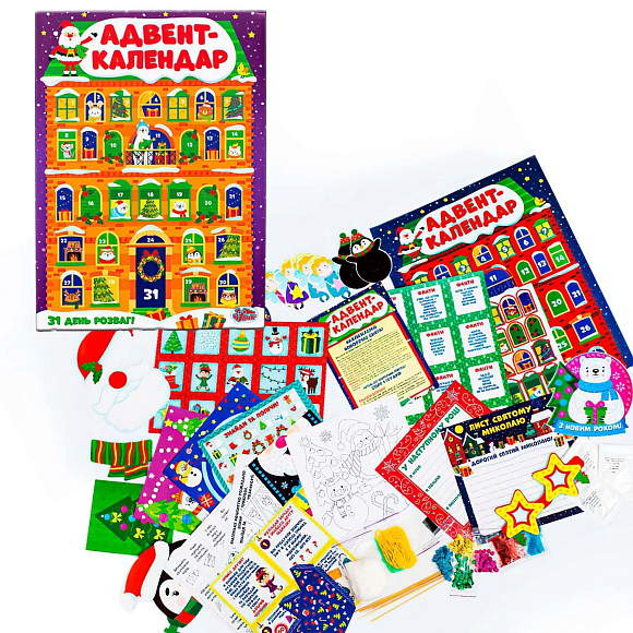Створювати приємні спогади стало ще простіше! Подарунковий набір «Адвент-календар» створить по-особливому святкову атмосферу в домі!Понад 30 завдань на кожен день грудня — від зовсім легких до більш складних! Адвент-календар допоможе підготуватися до зимових свят та приємно провести час в їх очікуванні. Тож, хутчіше відкриваємо цей набір і поринаємо у світ креативу та творчості! Гарантуємо 100% незабутні миті проведені разом. Будиночок-календар стане яскравою прикрасою, а також допоможе дитині зрозуміти, скільки днів залишилося до свята. З книжечкою-інструкцією очікування свят перетвориться на веселу та цікаву гру!