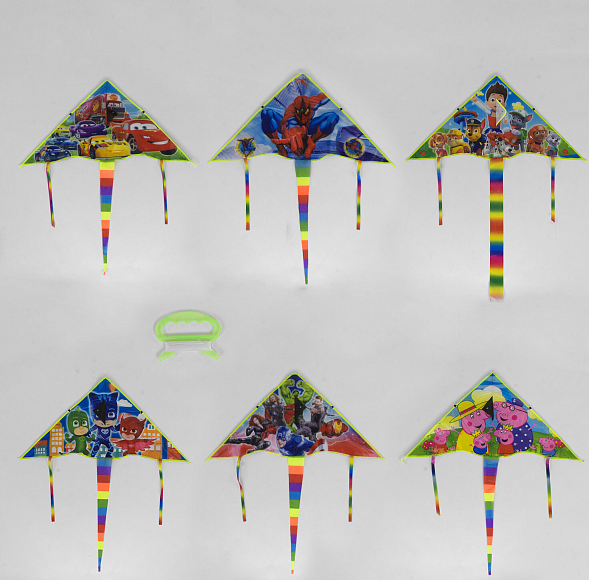 Дельтоподібним барвистий повітряний змій обов'язково сподобається вашому малюкові. Його форма прекрасно підійде для стабільного польоту і легкого управління, а оригінальний зовнішній вигляд дозволить змію ефектніше виглядати на небесному тлі.