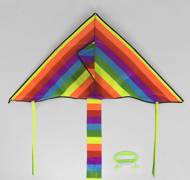 Дельтоподібним барвистий повітряний змій обов'язково сподобається вашому малюкові. Його форма прекрасно підійде для стабільного польоту і легкого управління, а оригінальний зовнішній вигляд дозволить змію ефектніше виглядати на небесному тлі.