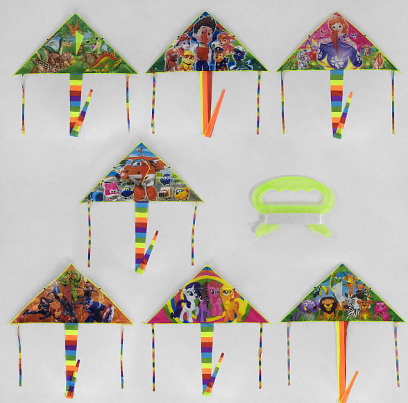 Дельтоподібним барвистий повітряний змій обов'язково сподобається вашому малюкові. Його форма прекрасно підійде для стабільного польоту і легкого управління, а оригінальний зовнішній вигляд дозволить змію ефектніше виглядати на небесному тлі.