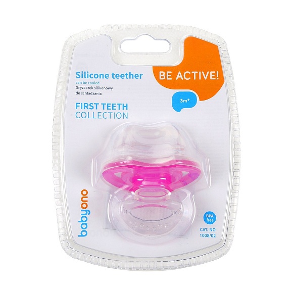Опис Прорізувач для зубів силіконовий охолоджуючий "Перші зубки" (Рожевий) "BabyOno"