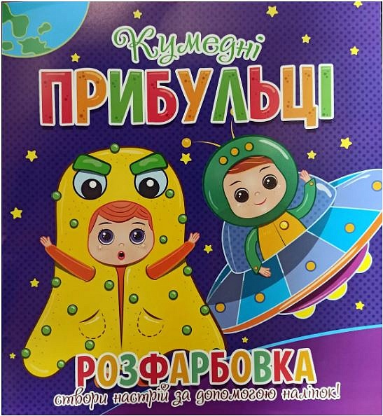 Розфарбовка для малечі з 12-ма наліпками-обличчями: Кумедні прибульці