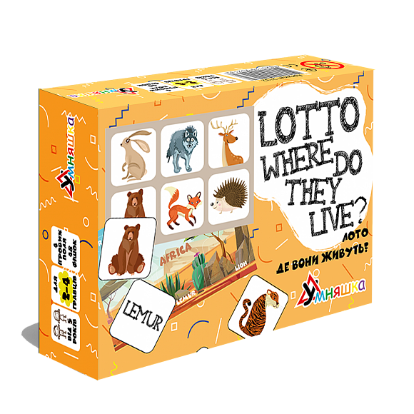 Опис Розвиваюча настільна гра "Лото англійська Де вони живуть?/lotto where do they live?"