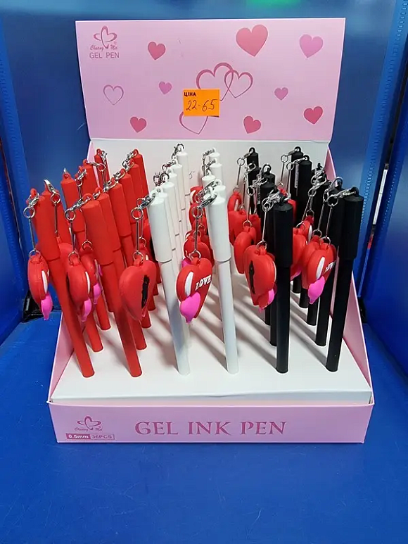 Опис Ручка кулькова із прикрасою у вигляді подвійного серця 22-65